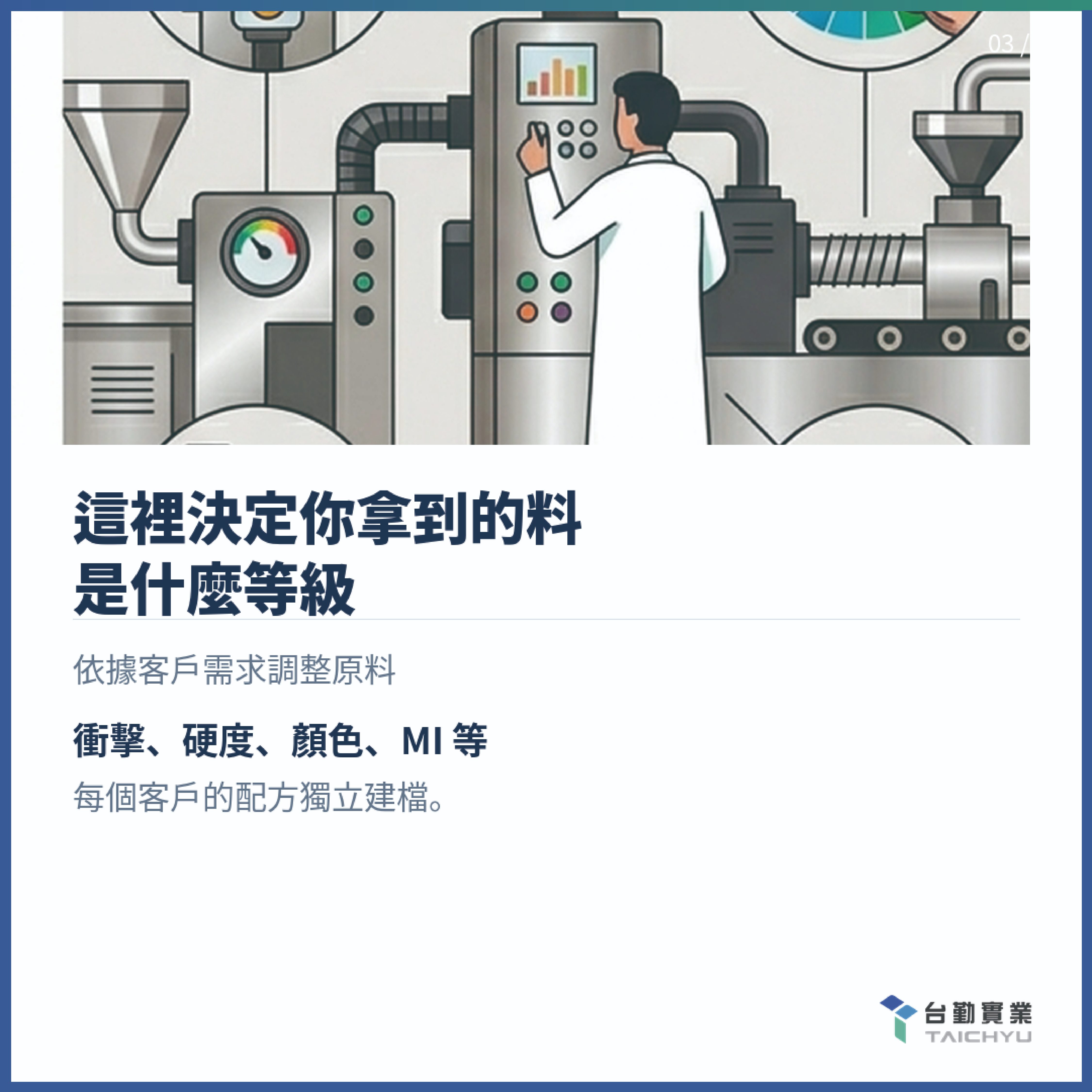 很多人以為再生料品質不穩定,其實讓它穩定的關鍵是—從原料篩選、配方調配到物性測試,每一關都有標準。